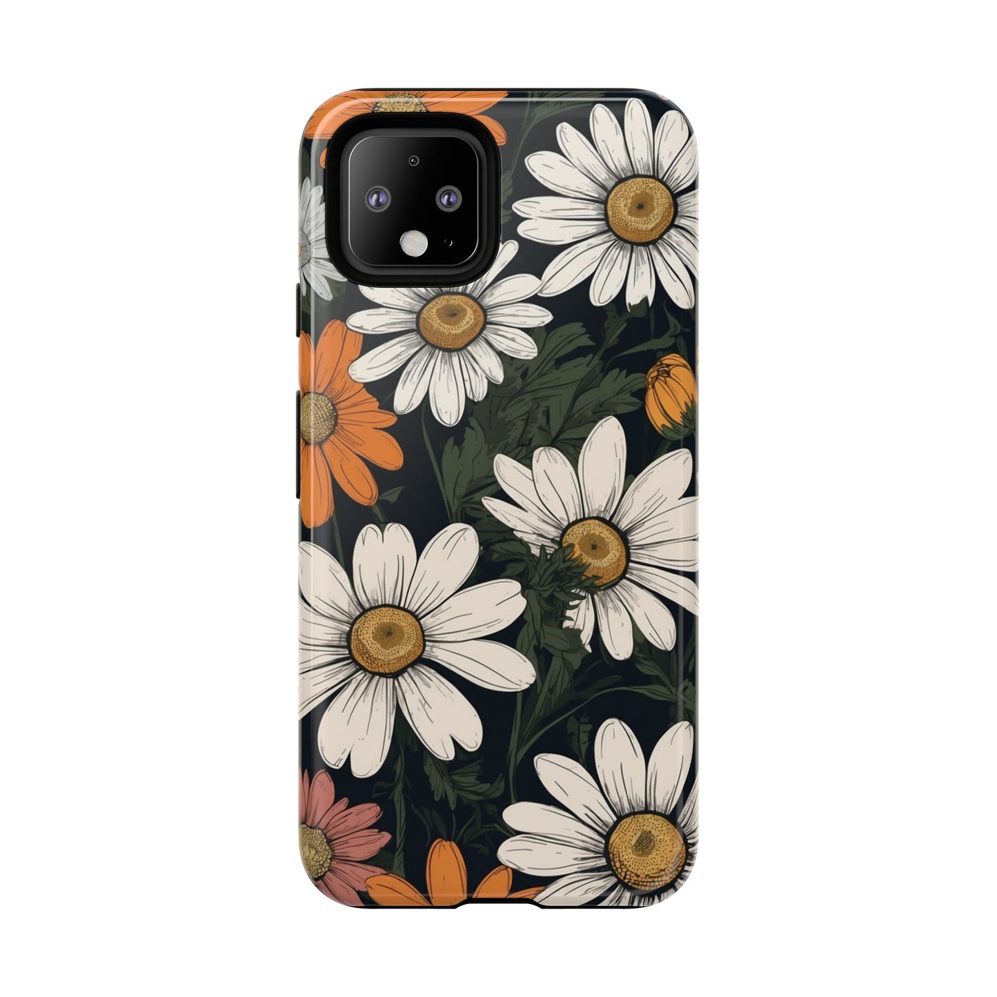 Boho Chic Daisies Floral Pattern "White, Orange & Pink" Phone Case