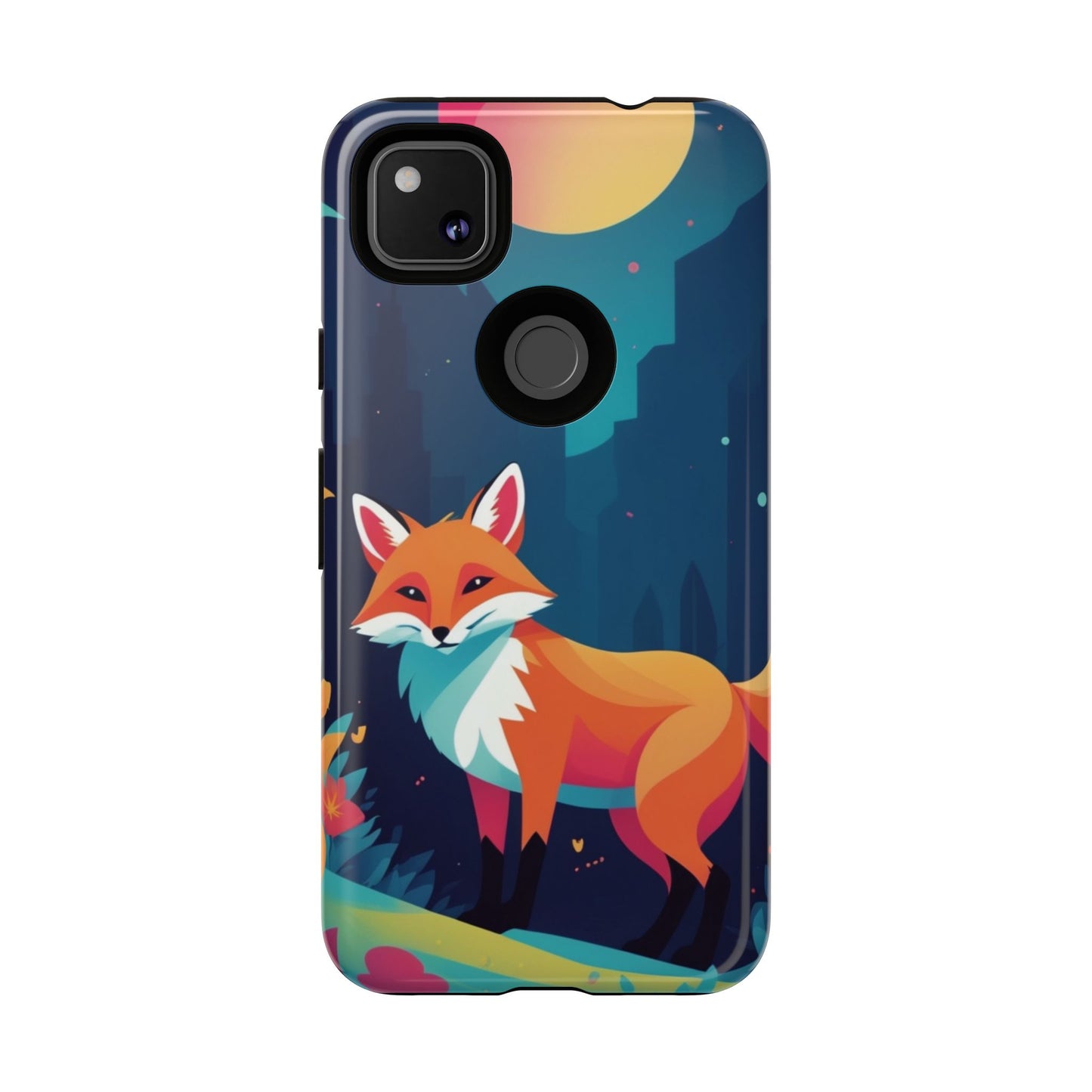 A cheeky fox lounges under a fiery orange-red moon in this bold, dreamlike phone case design. Vivid pop-art colours meet moody night tones, wrapping your device in both cosmic charm and sturdy protection.